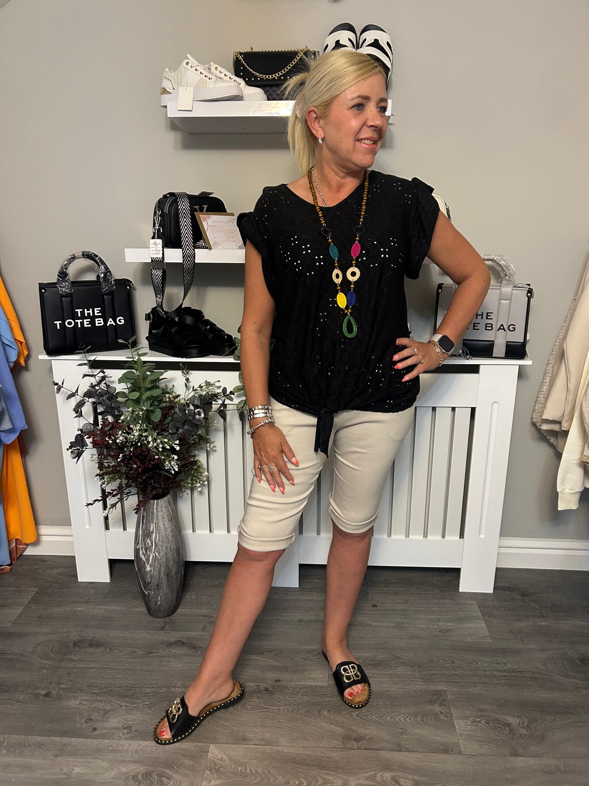 Tie Front Top & Necklace BLACK ONE SIZE 8-16