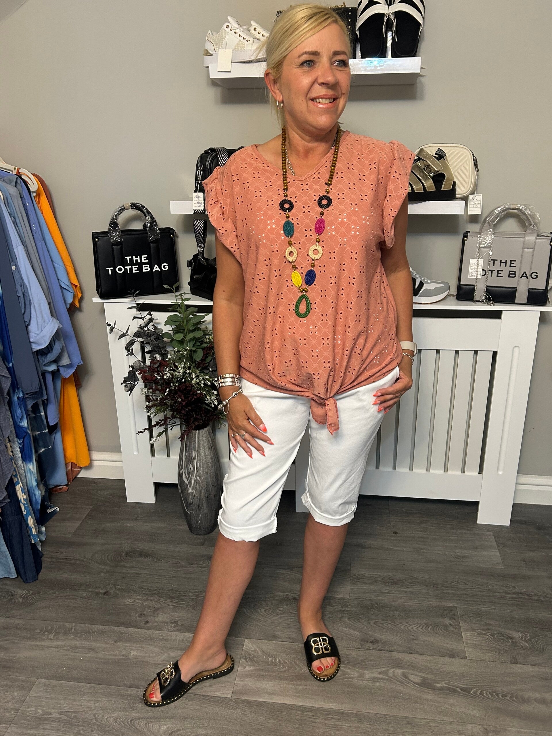 Tie Front Top & Necklace PINK ONE SIZE 8-16